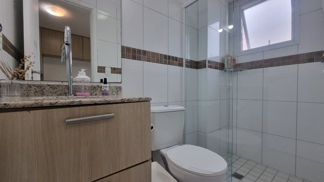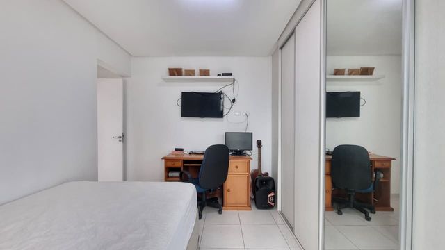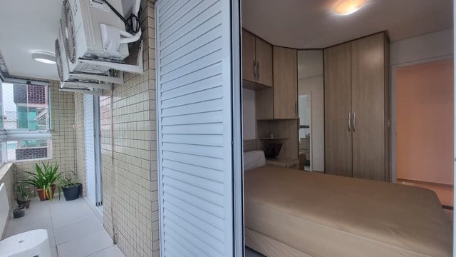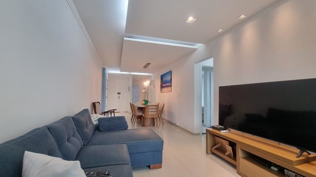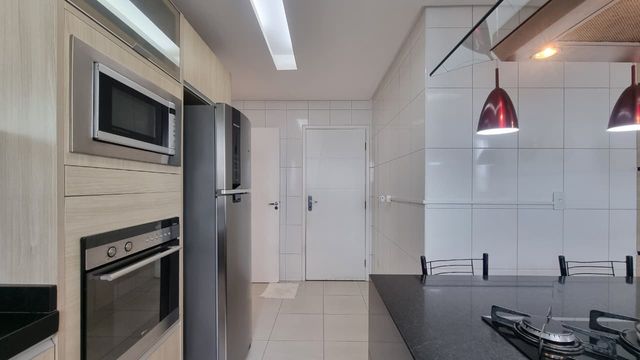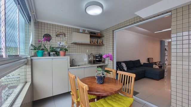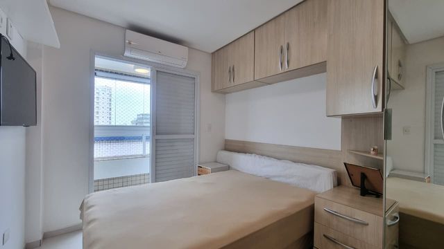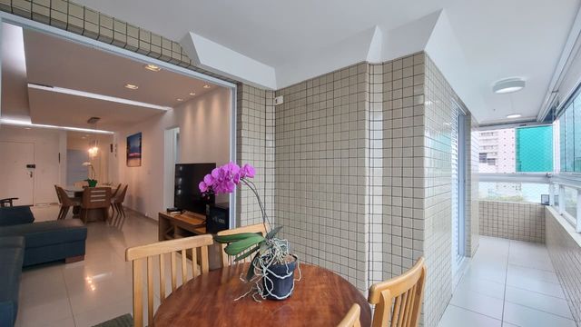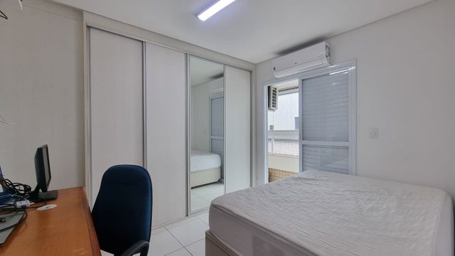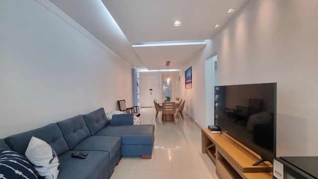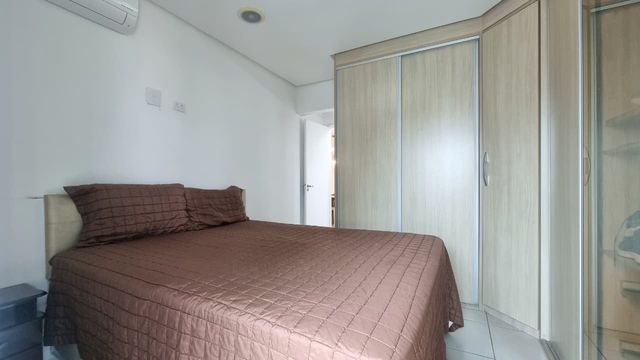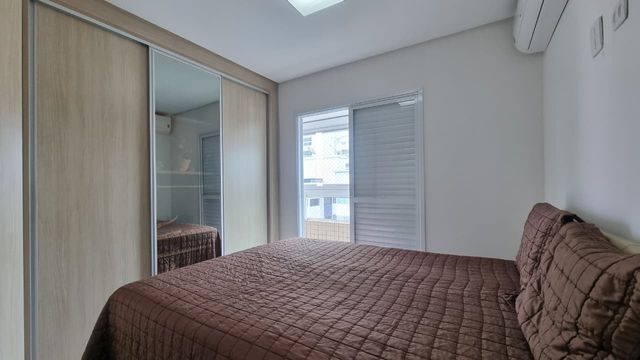 Com vista para o mar, o imóvel conta com varanda gourmet, sala ampla para 2 ambientes e está totalmente mobiliado e planejado, pronto para morar. Além disso, possui 2 vagas privativas de garagem e direito ao uso de armário exclusivo para depósito de utensílios de praia.