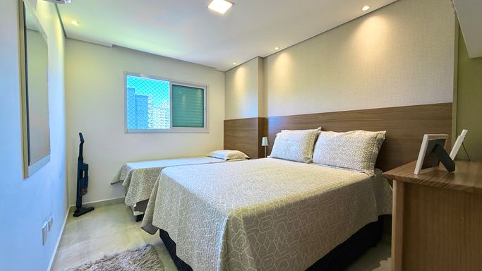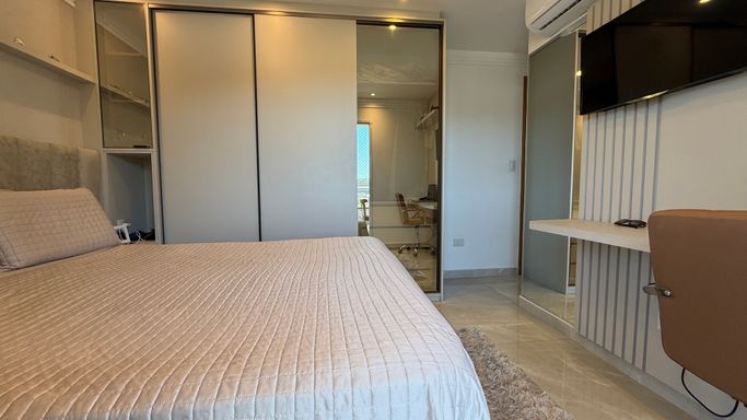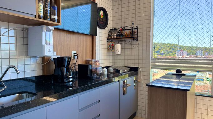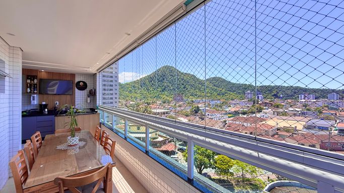 Este apartamento à venda em Praia Grande no Canto do Forte oferece uma combinação completa de conforto, praticidade e localização estratégica, ideal para quem busca viver com qualidade a poucos minutos da praia. O imóvel conta com 119 metros de área útil, totalmente reformado, com mobília inclusa e ambientes planejados que valorizam cada espaço. Seus 3 quartos, sendo 2 suítes, proporcionam privacidade e funcionalidade, enquanto a sala ampla integrada à sacada gourmet e uma linda vista para o mar e Vila Matilde envidraçada cria um ambiente perfeito para receber familiares e amigos. A infraestrutura inclui ar condicionado em todos os ambientes, cozinha planejada e quartos com móveis sob medida, além de duas vagas demarcadas que garantem praticidade no dia a dia. O edifício destaca-se por oferecer lazer completo e portaria presencial. O imóvel aceita financiamento bancário e ainda possibilita permuta por casa no próprio Canto do Forte.