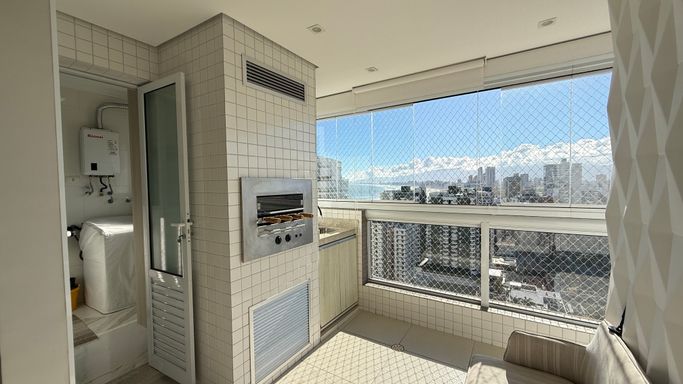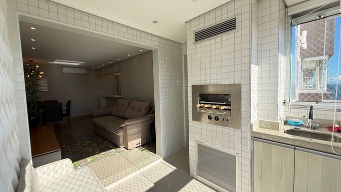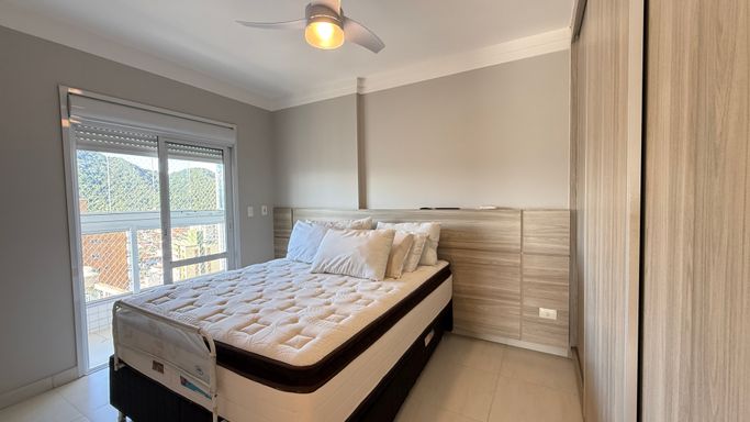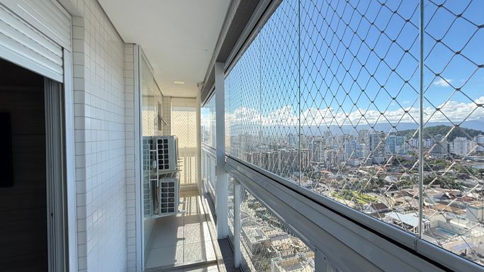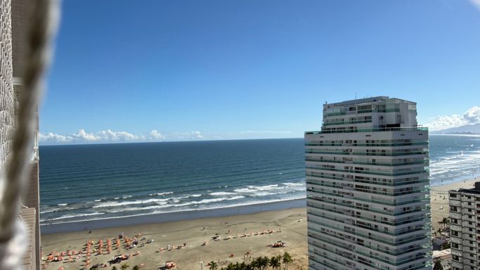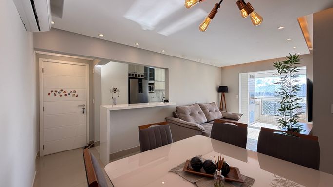 A sala espaçosa proporciona um espaço aconchegante para o dia a dia e se conecta perfeitamente à vista deslumbrante para o mar. Localizado no Canto do Forte, o apartamento está em uma região privilegiada, próximo a comércios, serviços e opções de lazer.