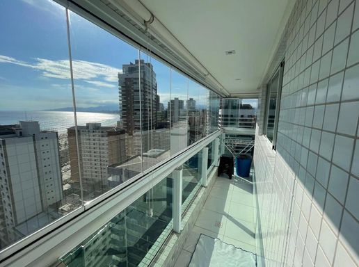 Apartamento de alto padrão com vista frontal permanente para o mar, localizado no Canto do Forte, a menos de 100 metros da praia, em andar alto, proporcionando amplitude visual, excelente ventilação e total privacidade.