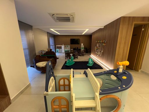 O apartamento conta com 3 vagas de garagem demarcadas, garantindo segurança e praticidade. O empreendimento oferece lazer completo com portaria 24h, piscina, cinema, salão de festas, salão de jogos, sauna, brinquedoteca e academia, proporcionando qualidade de vida e entretenimento para toda a família.