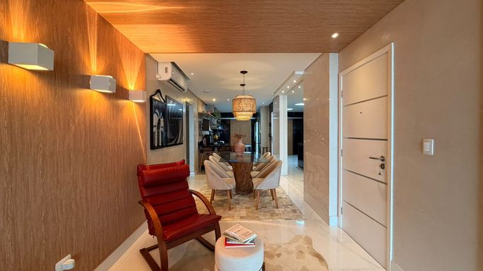 O imóvel conta com 3 suítes espaçosas, lavabo, ambientes amplos e integrados, totalmente mobiliado, pronto para morar. A varanda gourmet é envidraçada e equipada com churrasqueira, perfeita para receber amigos e familiares desfrutando de uma vista privilegiada da orla.