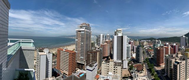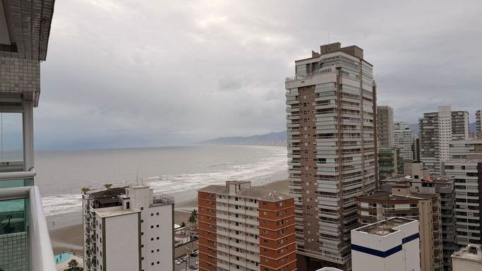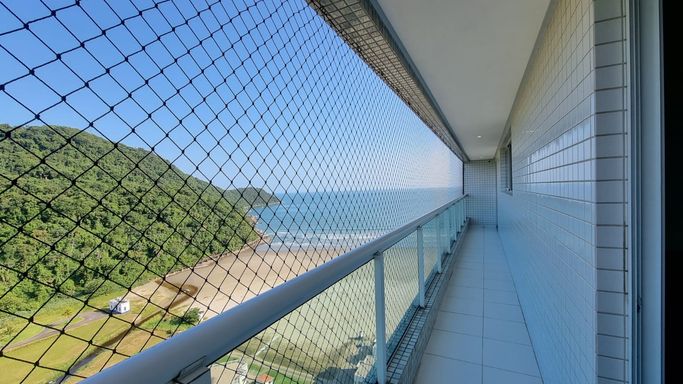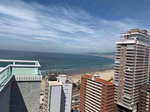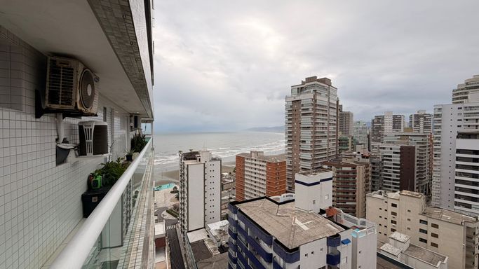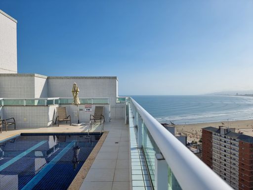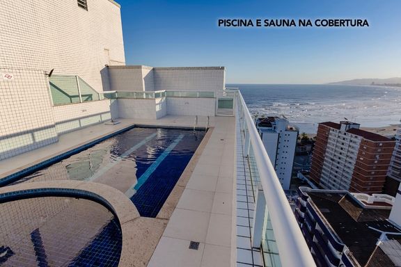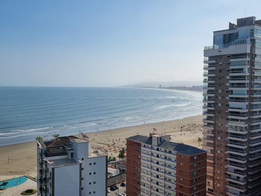 Apartamento de alto padrão com vista frontal permanente para o mar, localizado no Canto do Forte, a menos de 100 metros da praia, em andar alto, proporcionando amplitude visual, excelente ventilação e total privacidade.