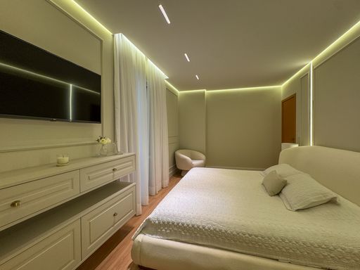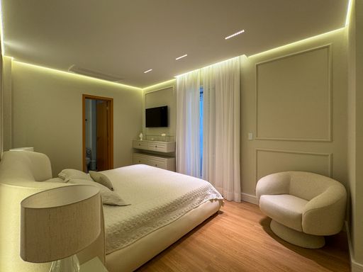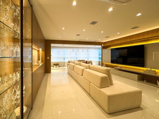 Este apartamento à venda em Praia Grande no Canto do Forte é uma excelente oportunidade para quem busca conforto, praticidade e localização privilegiada. Com 153 metros de área útil, o imóvel está totalmente mobiliado e pronto para morar, oferecendo um ambiente moderno e funcional. São quatro quartos, sendo três suítes, além de um lavabo e um banheiro social. A sala é espaçosa e mobiliada, perfeita para receber amigos e familiares. A cozinha é planejada e os quartos contam com móveis sob medida, garantindo organização e otimização de espaço.