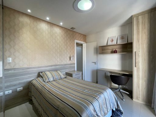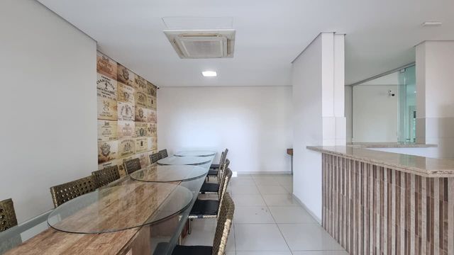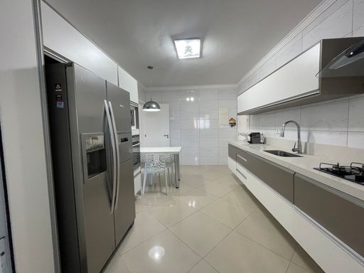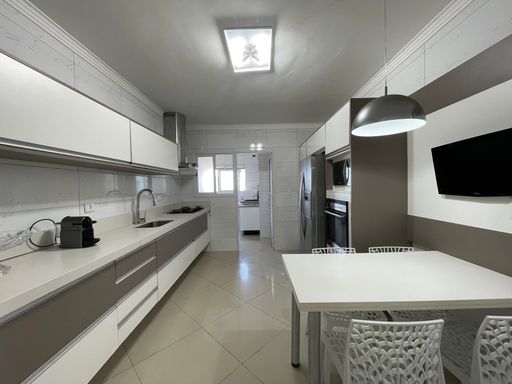 Conta com 3 suítes mais dependência de empregada com banheiro e um lavabo, que garante mais comodidade no dia a dia. A sala possui dois ambientes integrados, proporcionando mais espaço e funcionalidade, enquanto a cozinha planejada e ampla atende perfeitamente às necessidades de quem gosta de praticidade e organização.
