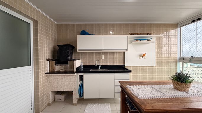 Dispõe ainda de 3 vagas de garagem, área de serviço espaçosa e box privativo para armazenamento de utensílios de praia.