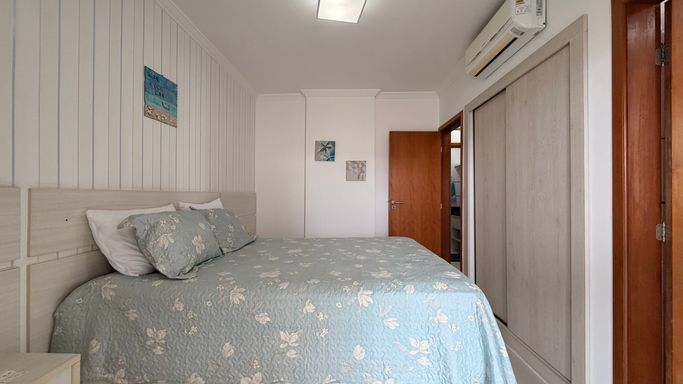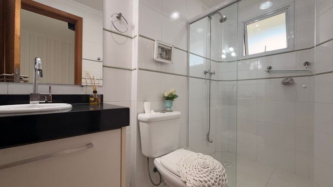 O imóvel conta com 3 dormitórios, todos suítes, ambientes amplos e muito bem distribuídos, além de estar totalmente mobiliado, pronto para morar. Um dos grandes destaques são as duas varandas envidraçadas: a principal, ampla e de frente para a rua, e a varanda gourmet ao lado da cozinha, equipada com churrasqueira ecológica, ideal para momentos de lazer e confraternização.