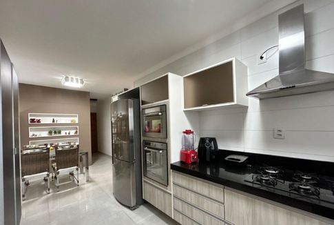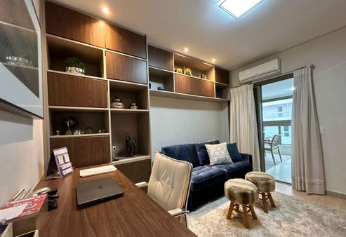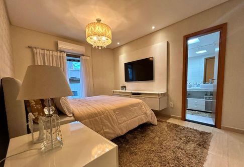 Apartamento à venda em Praia Grande no forte, localizado a 150 metros de distância da praia, com 182 metros de área útil e ambientes amplos e bem distribuídos. O imóvel possui três quartos, todos suítes, além de um banheiro social. A sala é espaçosa e totalmente mobiliada, integrada à sacada gourmet com churrasqueira elétrica. A cozinha é planejada e os quartos contam com móveis planejados, garantindo melhor aproveitamento dos espaços. O apartamento possui ar-condicionado em todos os ambientes, três vagas de garagem e será vendido com mobília inclusa, sendo retirados apenas os itens de decoração e pertences pessoais. Aceita financiamento bancário ou pagamento à vista e aceita permuta por imóvel de menor valor.