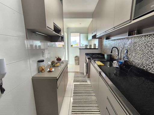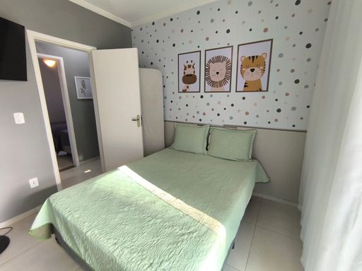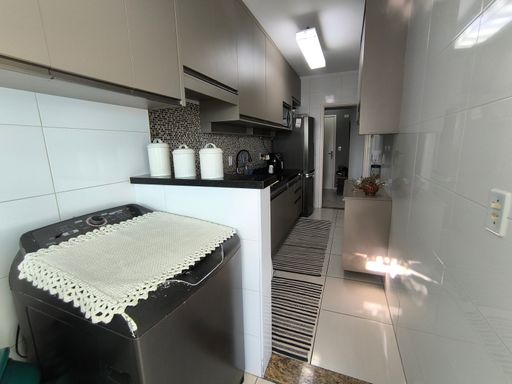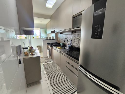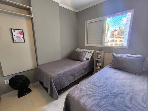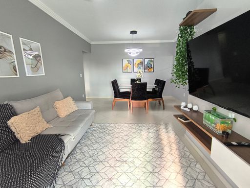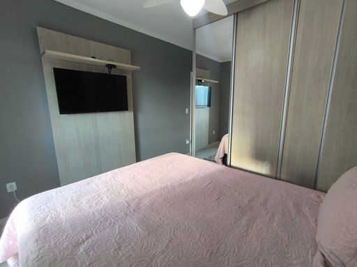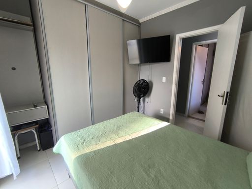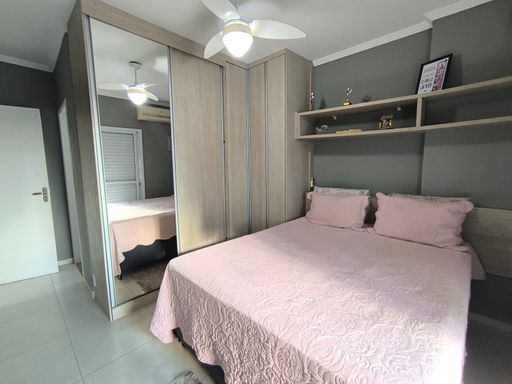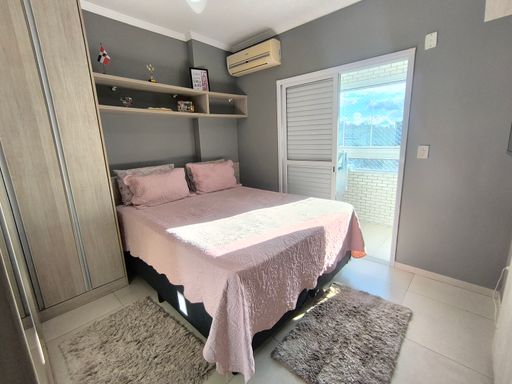 A cozinha é planejada e oferece praticidade, enquanto os quartos contam com móveis planejados, garantindo melhor aproveitamento dos espaços. O apartamento permanecerá somente com a mobília planejada. Há ar condicionado em um dos quartos, o que contribui para maior conforto térmico. O imóvel possui duas vagas coletivas e está localizado a aproximadamente 500 metros da praia, unindo qualidade de vida e conveniência. Aceita financiamento bancário, facilitando a aquisição.