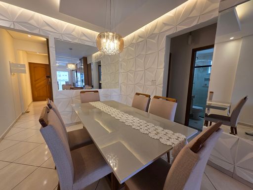 Este apartamento à venda em Praia Grande na Guilhermina é uma excelente opção para quem procura espaço, conforto e uma localização privilegiada a apenas 350 metros da praia. Com 116 m² de área útil, o imóvel conta com 3 quartos, sendo 1 suíte, 2 banheiros sociais, sala ampla e mobiliada, além de cozinha planejada que oferece praticidade no dia a dia. As 2 vagas de garagem garantem comodidade para os moradores.