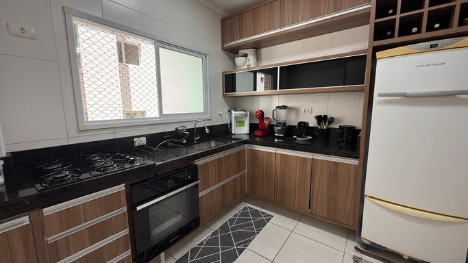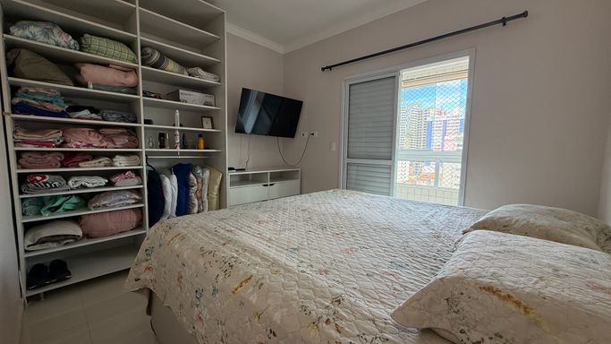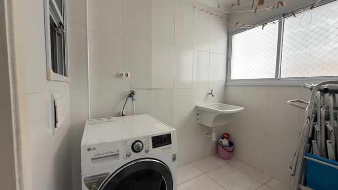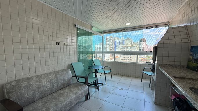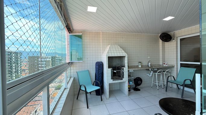 Este apartamento à venda em Praia Grande - Guilhermina oferece conforto, espaço e uma localização privilegiada. Com três suítes, lavabo, sala ampla para dois ambientes e uma varanda extensa com churrasqueira que se estende pela sala e pelos quartos, o imóvel proporciona a sensação de morar em uma casa, mas com a segurança e praticidade de um apartamento. São duas vagas de garagem demarcadas, está localizado em andar alto, com vista para o mar e frente para a rua. Conta com 140 metros de área útil e está a apenas 200 metros da praia, ideal para quem valoriza a proximidade com o mar e quer aproveitar o melhor da vida no litoral. O prédio oferece lazer completo no rooftop, com piscina, academia, brinquedoteca, salão de jogos e salão de festas, pensado para proporcionar momentos especiais em família.