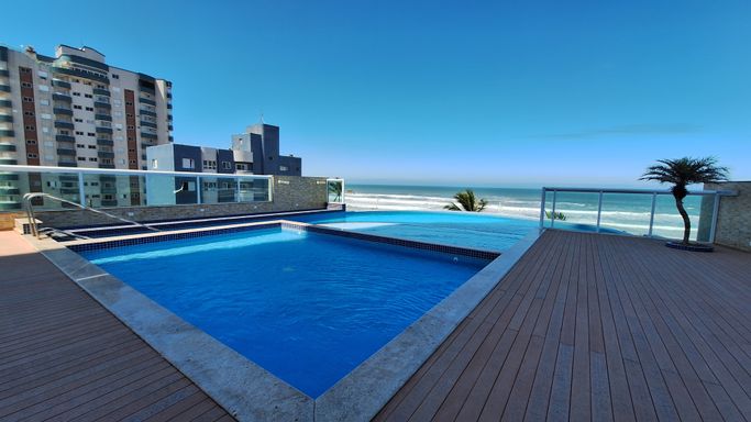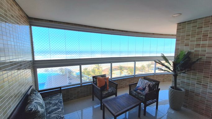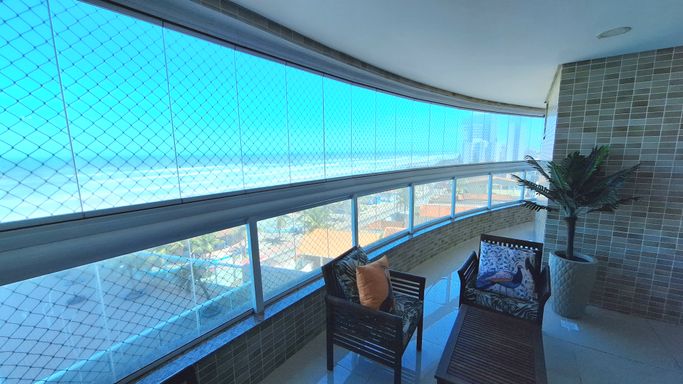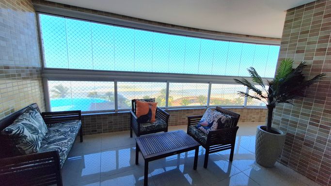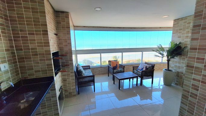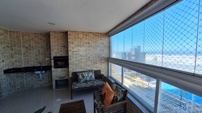 A sacada gourmet com churrasqueira a carvão permite aproveitar momentos de lazer com vista direta para o mar. O apartamento conta ainda com três vagas de garagem livres, um diferencial importante para quem prioriza comodidade. O imóvel aceita financiamento bancário, o que amplia as possibilidades de aquisição com condições facilitadas.