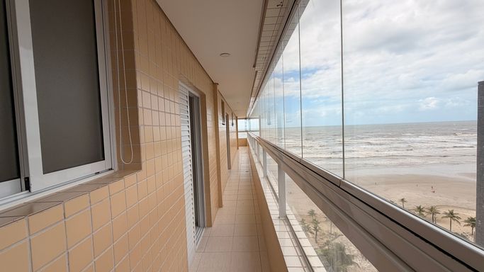 Sacada envidraçada com vista frente mar