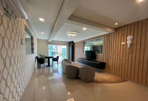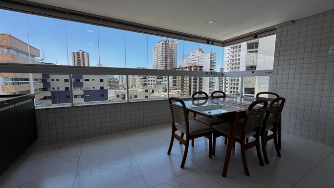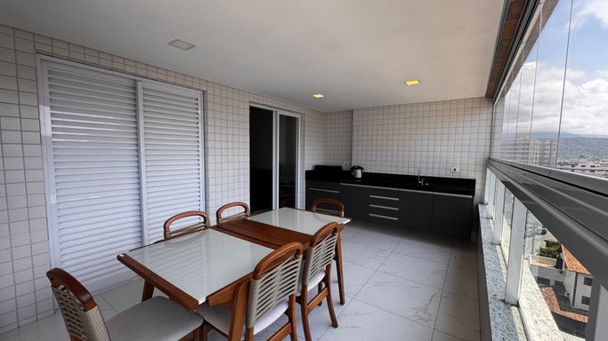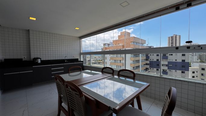 Apartamento à venda ou locação em Praia Grande na Vila Caiçara, ideal para quem busca conforto, espaço e localização privilegiada a 350 metros da praia. O imóvel aceita financiamento direto com a construtora, possui 110 metros de área útil e apresenta uma planta bem distribuída, com três quartos, sendo duas suítes, além de um banheiro social. A sala é espaçosa e integrada aos ambientes, conectando-se à sacada gourmet com churrasqueira elétrica, proporcionando praticidade e conforto no dia a dia. O apartamento conta com cozinha planejada, quartos com móveis planejados e infraestrutura para ar-condicionado em todos os ambientes. A mobília está inclusa, sendo retirados apenas os itens pessoais, as televisões e as camas. O imóvel dispõe de duas vagas de garagem e está inserido em um empreendimento completo, com portaria 24 horas, piscina aquecida e diversas opções de lazer.
