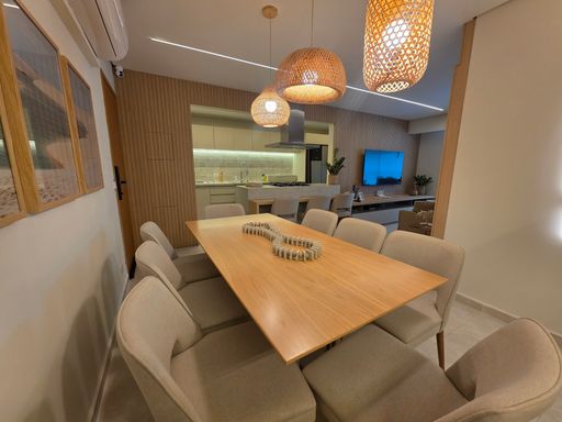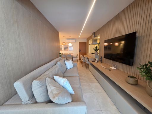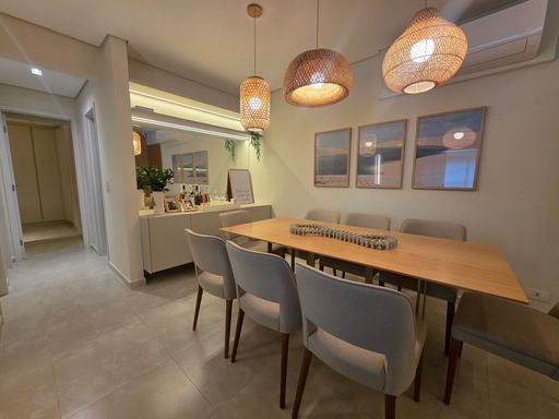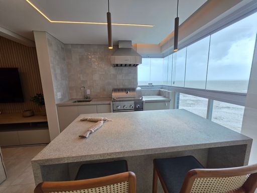 Apartamento à venda em Praia Grande no Bairro Caiçara, localizado em frente ao mar, com excelente distribuição dos ambientes e 113 metros de área útil. O imóvel aceita financiamento bancário e está totalmente mobiliado, oferecendo praticidade e conforto desde o primeiro dia. São três quartos bem distribuídos, sendo uma suíte, além de um banheiro social, atendendo perfeitamente famílias que buscam espaço e funcionalidade. A sala é ampla, totalmente mobiliada e integrada à sacada gourmet, que conta com churrasqueira a gás, ideal para momentos de convivência com vista privilegiada. A cozinha é planejada, funcional e bem aproveitada, enquanto os quartos possuem móveis planejados, garantindo organização e otimização dos espaços. O apartamento possui ar condicionado em todos os ambientes e duas vagas de garagem livres, agregando ainda mais conforto e comodidade. Todo o projeto foi desenvolvido por arquiteto, valorizando cada detalhe do imóvel.