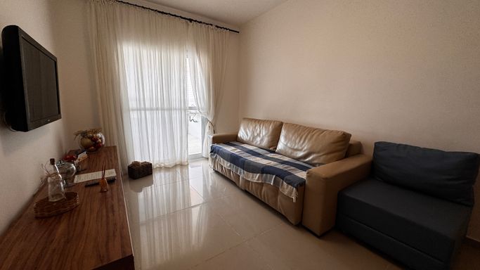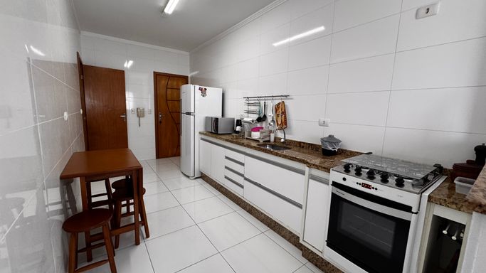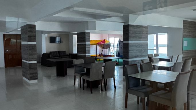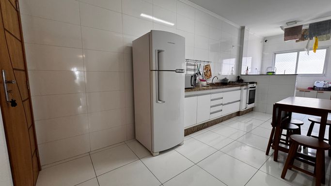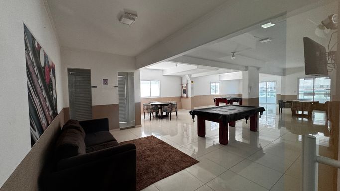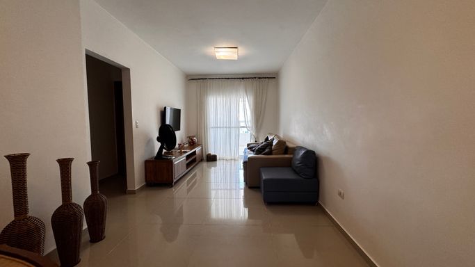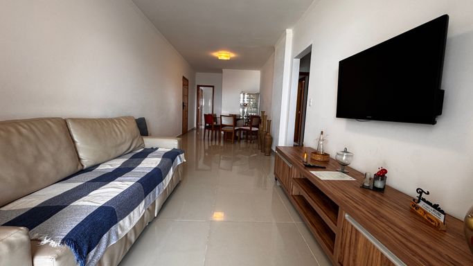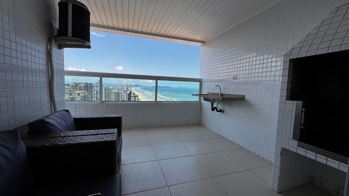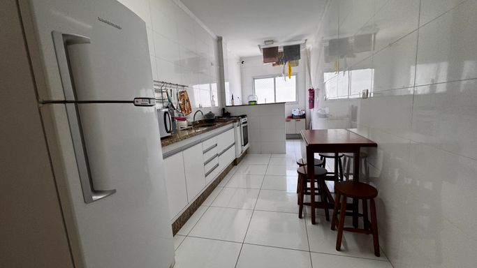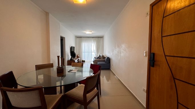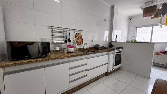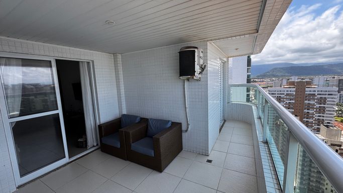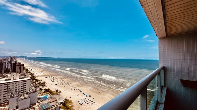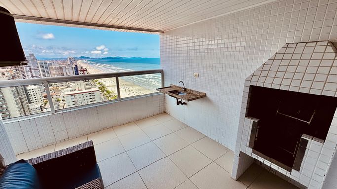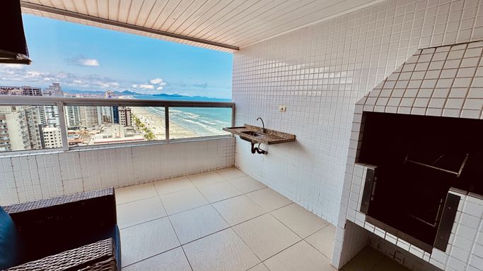 Este apartamento à venda em Praia Grande na Vila Caiçara está localizado em prédio frente mar e oferece uma planta ampla, com 117 metros de área útil, ideal para quem busca espaço e praticidade. O imóvel aceita financiamento bancário e também aceita permuta por imóvel em São Paulo. A sala é espaçosa e integrada à sacada gourmet, que conta com churrasqueira a carvão ecológica, proporcionando um ambiente funcional para uso diário.