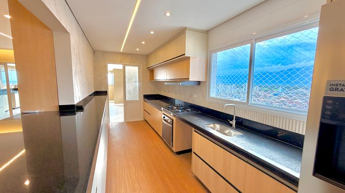 Apartamento à venda em Praia Grande no bairro Caiçara, com 199 metros de área útil, projetado para quem busca conforto, espaço e localização privilegiada. O imóvel possui 3 dormitórios, todos suítes, oferecendo mais privacidade e comodidade no dia a dia. A sala é espaçosa e bem distribuída, integrada a uma sacada grande que valoriza a ventilação e iluminação natural, além de contar com churrasqueira a carvão. A cozinha é ampla e funcional, os quartos são espaçosos e o apartamento possui banheira, está mobiliado, conta com 3 vagas de garagem demarcadas e 1 depósito privativo. Tudo isso em uma região de ótima localização, ideal para moradia ou investimento.