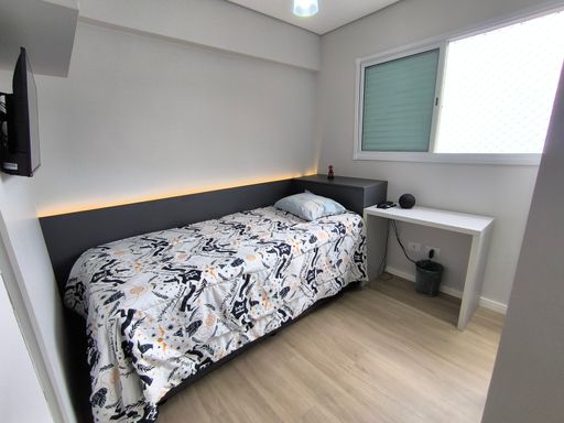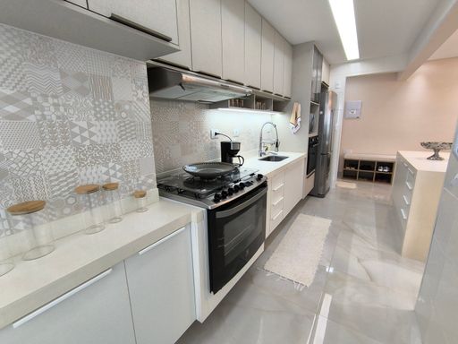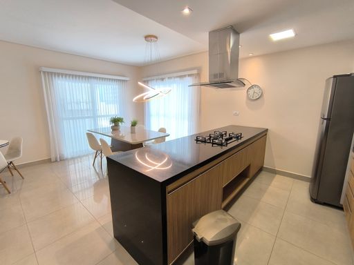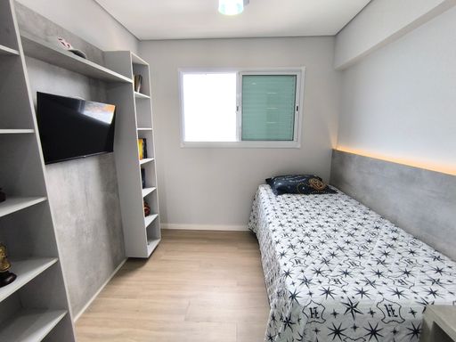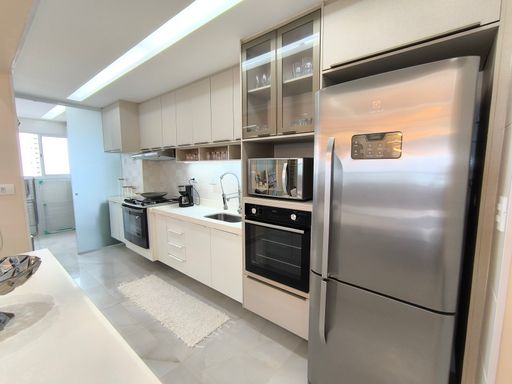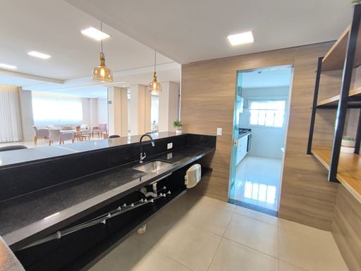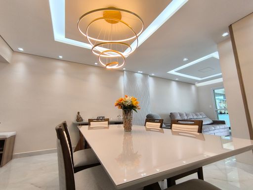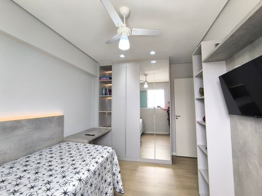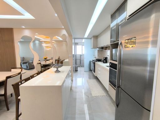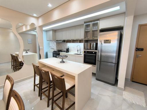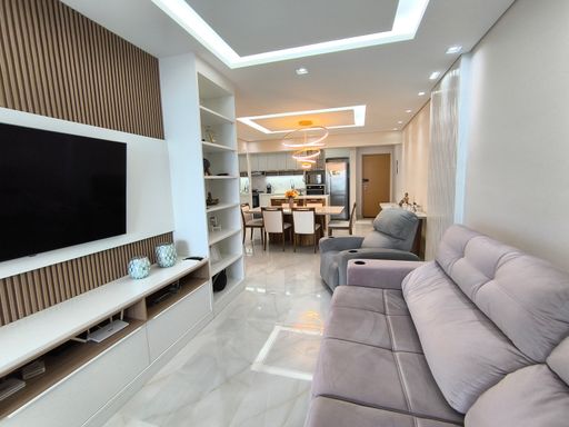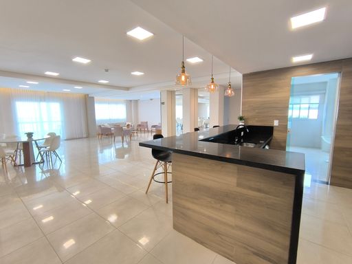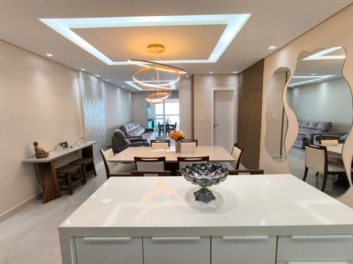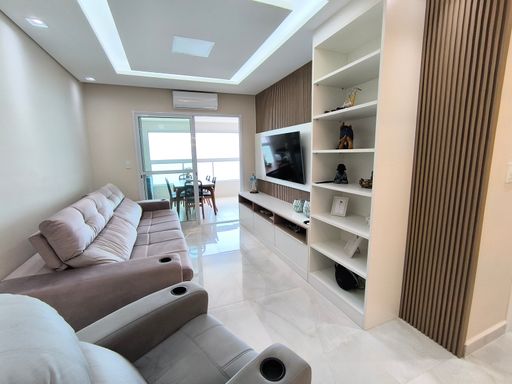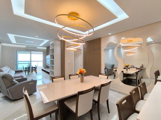 O imóvel foi projetado por design de interiores, com ambientes amplos e bem distribuídos. A sala é espaçosa e conta com ar-condicionado, ideal para o conforto térmico em todas as estações. A cozinha é planejada, os quartos possuem móveis sob medida e a sacada gourmet oferece um ambiente agradável para receber familiares e amigos com vista para o mar.