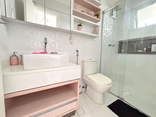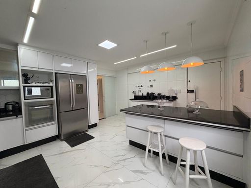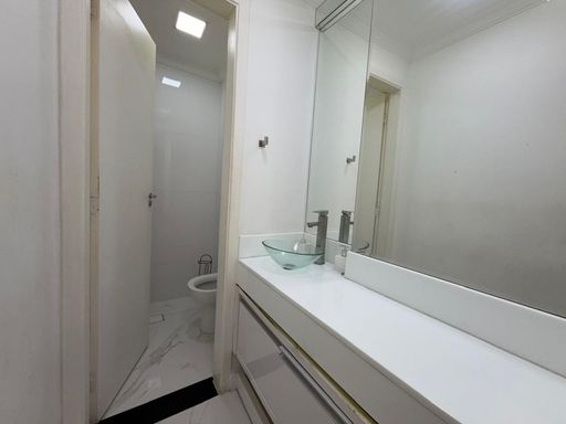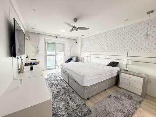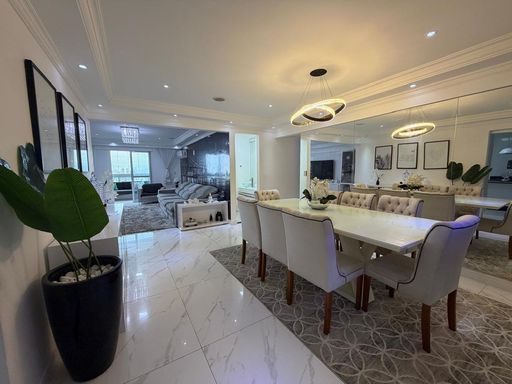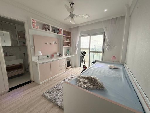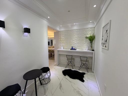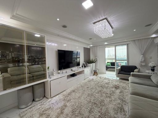 O apartamento está totalmente mobiliado e foi projetado por arquiteto, oferecendo ambientes planejados e bem distribuídos. Conta com sala espaçosa e mobiliada, cozinha planejada, quartos com móveis planejados e ar condicionado em todos os ambientes. A sacada gourmet com churrasqueira a carvão proporciona um espaço ideal para momentos de convivência.