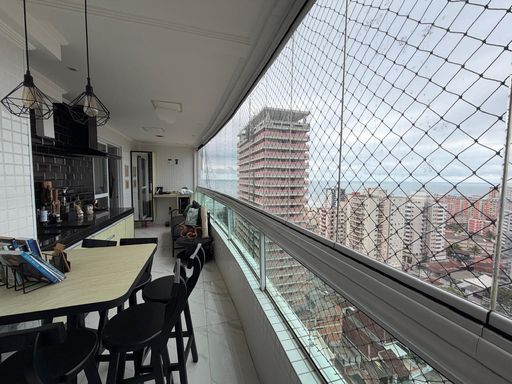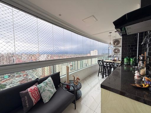 Apartamento à venda em Praia Grande no bairro Tupi com 175 metros de área útil e localizado a 200 metros de distância da praia. O imóvel aceita financiamento bancário e conta com três quartos, sendo três suítes, além de um lavabo e um banheiro social. Possui duas vagas de garagem rotativas. A mobília está inclusa, sendo retirados apenas itens pessoais.