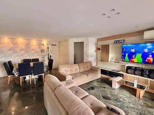 São 4 dormitórios, sendo 3 suítes, além de dependência de empregada com banheiro, garantindo mais praticidade e privacidade para toda a família. O apartamento possui sacada com churrasqueira a carvão, perfeita para momentos de lazer e confraternização, além de sala espaçosa e integrada à área gourmet.
