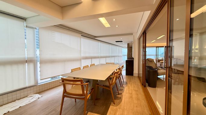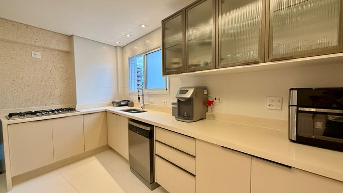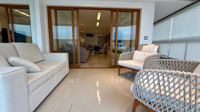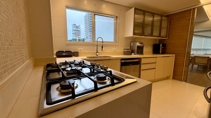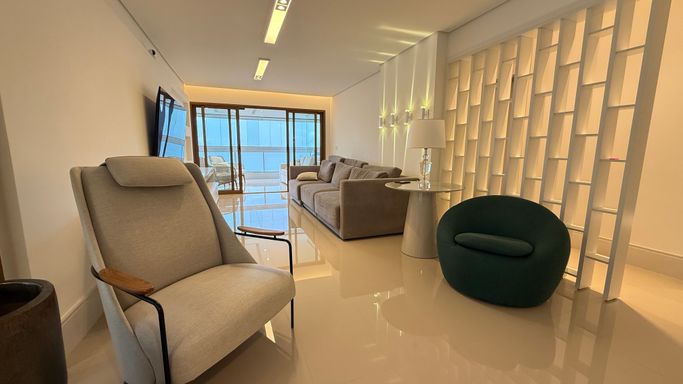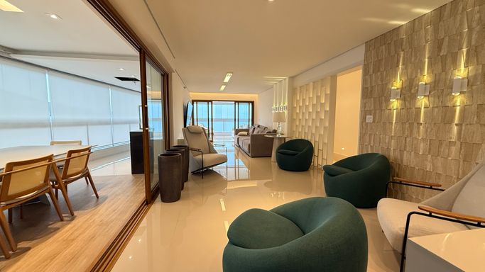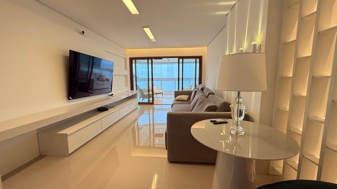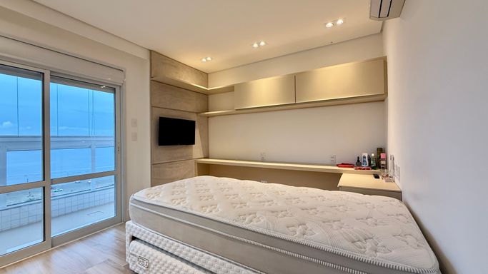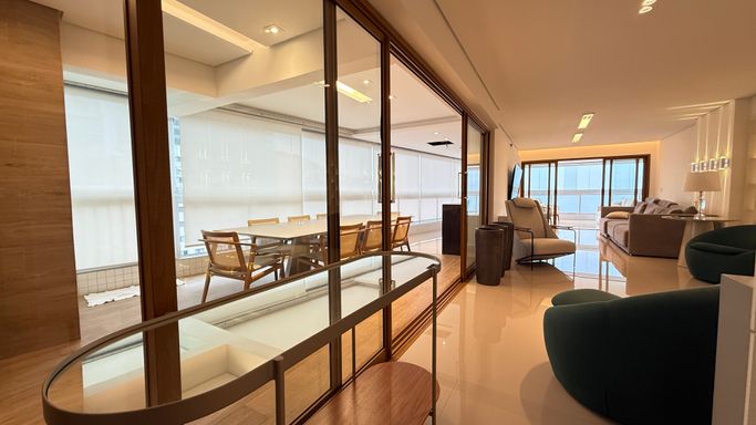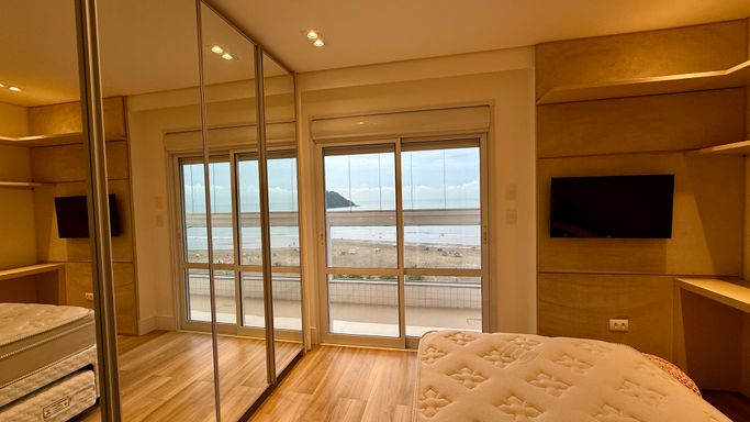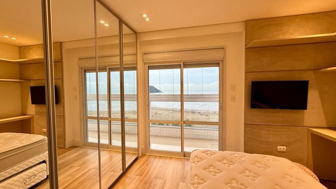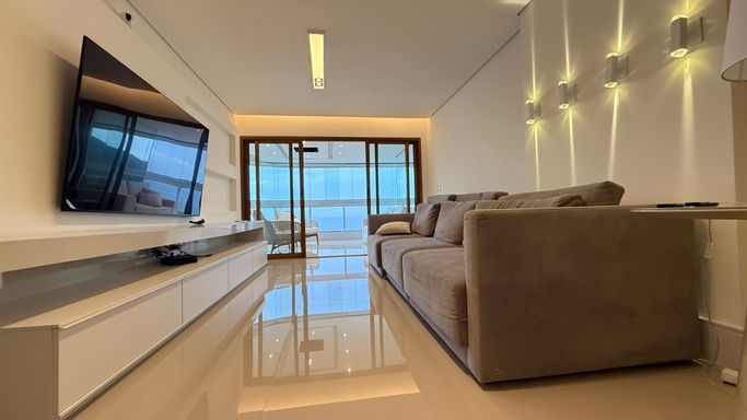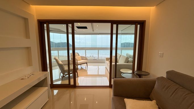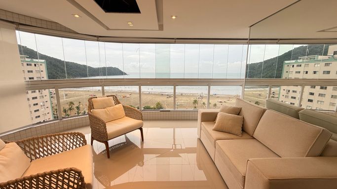 Localizado em um empreendimento de alto padrão à beira-mar, este apartamento oferece conforto, sofisticação e uma vista definitiva para o oceano. Por estar estrategicamente posicionado é possível observar o mar de todos os cômodos desse maravilhoso apartamento. Com 213 metros de área útil, distribuído em quatro dormitórios, sendo uma suíte master com closet e banheira de hidromassagem, uma suíte convencional com vista frente para o mar e mais dois dormitórios padrão. Você já conta com armários planejados para garantir praticidade no dia a dia. A cozinha está planejada e equipada, aquecimento central a gás e ar-condicionado já instalados. A sacada gourmet com churrasqueira é muito espaçosa e ideal para momentos de lazer, complementada pela vista privilegiada. Para aumentar seu conforto disponha de duas vagas de garagem demarcadas. Além disso, o financiamento bancário é aceito, facilitando a aquisição.