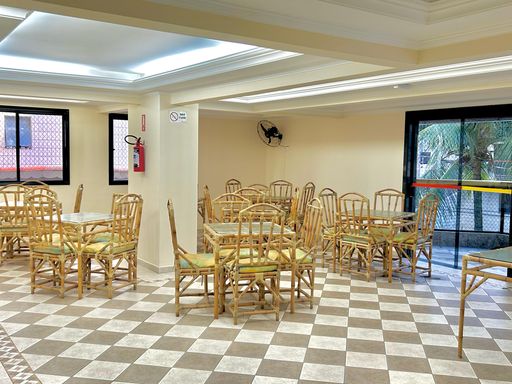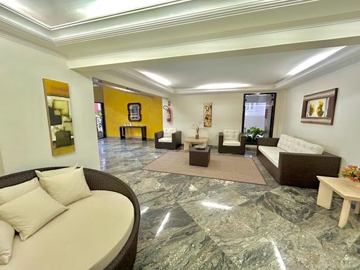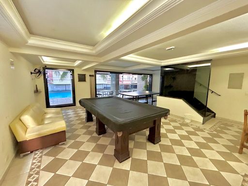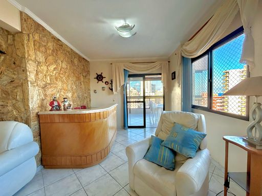 A sala espaçosa e mobiliada oferece conforto, enquanto a cozinha planejada garante funcionalidade no dia a dia. A sacada gourmet com churrasqueira a carvão é um diferencial para momentos de lazer e confraternização. Além disso, o imóvel possui ar-condicionado, proporcionando mais conforto térmico.