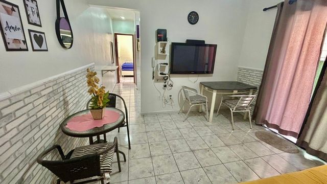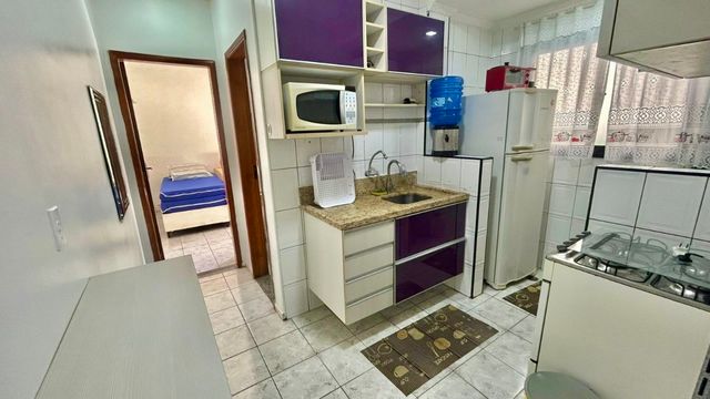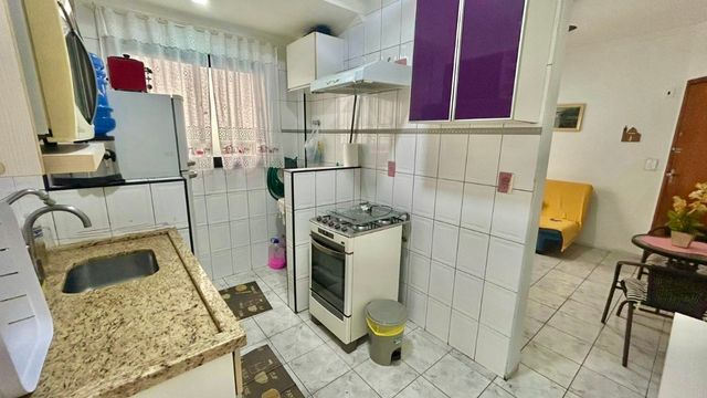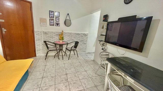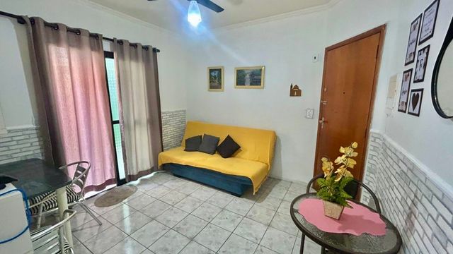 Apartamento de 1 quarto, localizado a 300 metros da praia, com 37 m² de área útil. Possui sala, cozinha, banheiro social e 1 vaga de garagem livre. Aceita financiamento bancário.