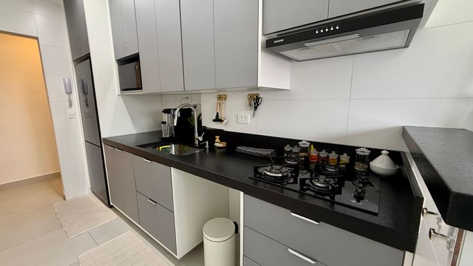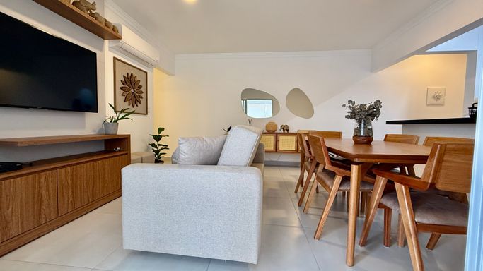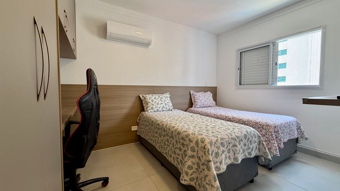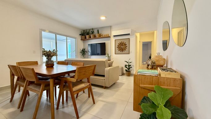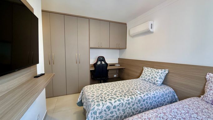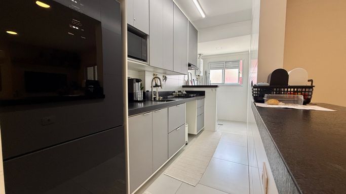 O apartamento perfeito existe. Este apartamento de duas suítes, totalmente mobiliado e decorado, com ar-condicionado instalado, varanda gourmet envidraçada, eletrodomésticos, mobília, estofados novos, é uma excelente