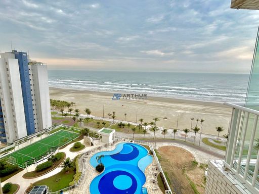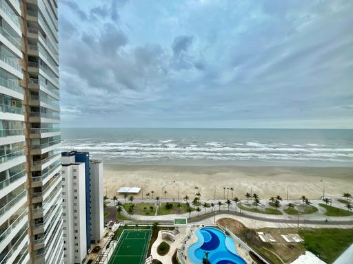 Apartamento para locação em Praia Grande na Nova Mirim, localizado de frente para o mar e com excelente aproveitamento dos espaços. O imóvel possui 69 metros de área útil, distribuídos em dois quartos, sendo uma suíte, além de um banheiro social. Churrasqueira a carvão, uma vaga de garagem. O empreendimento oferece portaria presencial 24 horas e ampla área de lazer, com piscina adulto e infantil, salão de festas, salão de jogos, cinema, playground, academia, minimercado e campo de futebol.