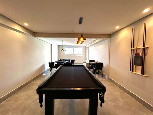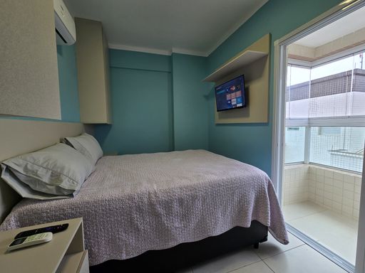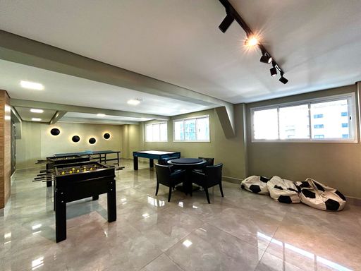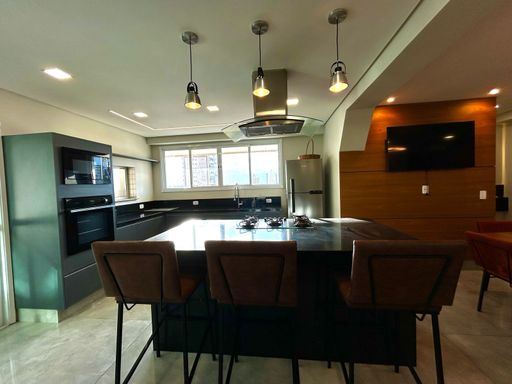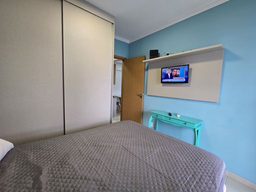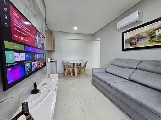 O apartamento possui uma sacada gourmet com vista livre, fechada com vidro, ideal para momentos de lazer e confraternização. A churrasqueira ecológica é um diferencial que agrega valor ao imóvel. Além disso, o apartamento está totalmente mobiliado e conta com ar condicionado em todos os ambientes, garantindo conforto em todas as estações. A sala é mobiliada e a cozinha é planejada, otimizando o espaço e a funcionalidade. Os quartos possuem móveis planejados, proporcionando um ambiente organizado e agradável.