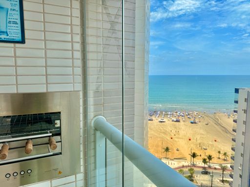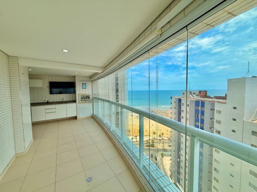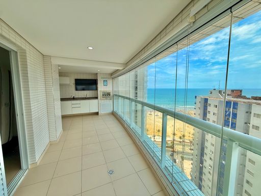 Apartamento para locação em Praia Grande no bairro Boqueirão, localizado em frente ao mar, ideal para quem busca conforto, espaço e praticidade em uma das regiões mais valorizadas da cidade. O imóvel possui 123 metros de área útil, distribuídos em três quartos, sendo duas suítes, além de um banheiro social. Conta com sala espaçosa, integrada à sacada gourmet com churrasqueira, proporcionando um ambiente funcional e bem distribuído. Possui ar-condicionado em todos os ambientes, cozinha planejada, quartos com móveis planejados e duas vagas coletivas.
