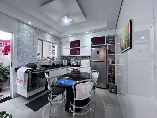 Com 2 dormitórios, sendo 1 suíte, o imóvel possui ambientes amplos e bem distribuídos, incluindo sala grande, cozinha espaçosa, lavabo e área de serviço. A casa carrega um estilo único e acolhedor, com detalhes que reforçam seu perfil aconchegante. Conta ainda com garagem para 2 carros e espaço com churrasqueira, ideal para momentos de lazer e convivência.