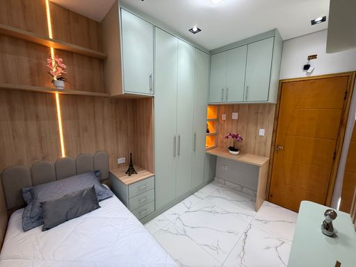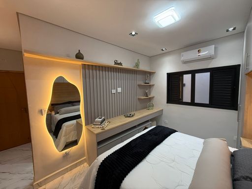 Além disso, todos os ambientes possuem ar-condicionado, sendo o da sala com 18 mil BTUs, garantindo conforto térmico em qualquer época do ano. O imóvel ainda possui um espaço pensado especialmente para o seu pet, com uma casinha exclusiva na suíte do casal.