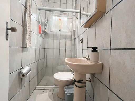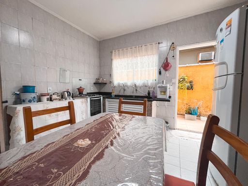 Na casa térrea, os ambientes são bem distribuídos com sala aconchegante, cozinha ampla, dois dormitórios, sendo um deles suíte, além de área de serviço e uma dependência nos fundos. A área externa conta com churrasqueira à carvão, perfeita para reunir amigos e familiares. Esta unidade não é mobiliada, permanecendo apenas um armário em um dos dormitórios.