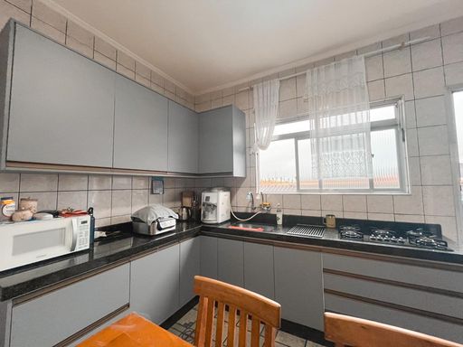 A casa superior oferece uma sala de estar aconchegante, cozinha planejada, dois dormitórios com armários planejados e área de serviço. O diferencial é que permanecem os armários planejados da cozinha e dos dormitórios, proporcionando mais praticidade para quem deseja se mudar com agilidade. Ambas as unidades possuem uma vaga de garagem.