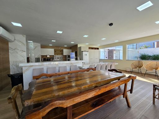 O imóvel possui ampla área útil de 250 metros quadrados e acomoda até 6 veículos. Nos espaços de lazer, destaca-se a piscina com hidromassagem, salão de festas, salão de jogos, sauna e solarium. Para momentos de convivência, há um espaço gourmet completo com churrasqueira a carvão. A propriedade está localizada em uma região de casas de alto padrão, onde a construção de prédios não é permitida, garantindo privacidade e valorização do imóvel. Além disso, o proprietário aceita automóvel e imóvel como parte de pagamento, facilitando a negociação.