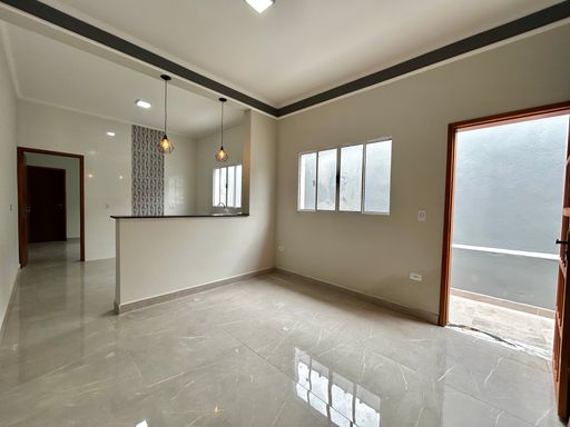 Casa geminada à venda em Mongaguá no Jardim Praia Grande com 83,52 metros de área útil, ideal para quem busca conforto, modernidade e praticidade no litoral. O imóvel conta com 2 quartos, sendo 1 suíte, 1 banheiro social e 1 lavabo externo, oferecendo uma distribuição funcional dos ambientes. Possui 2 vagas de garagem e um projeto moderno que valoriza cada espaço da casa.