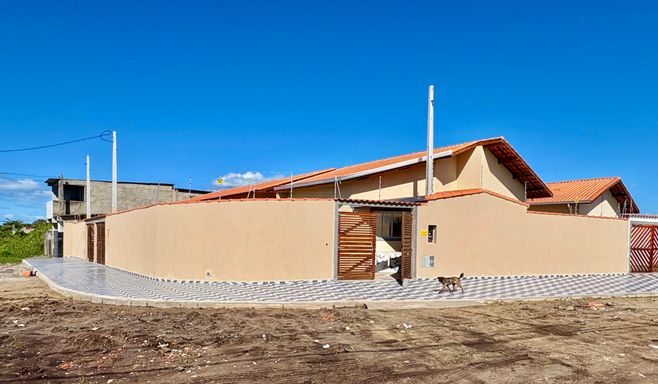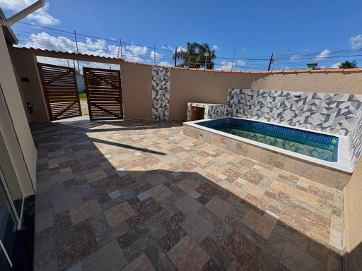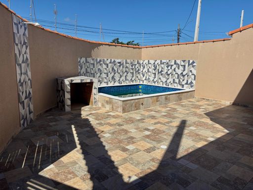 Casa à venda em Itanhaém no Jardim Jamaica. Este imóvel novo oferece uma estrutura prática e funcional, com dois quartos, um banheiro social, área útil de sessenta metros quadrados e área total de cento e vinte e cinco metros quadrados. A casa conta com piscina, churrasqueira a carvão e duas vagas de garagem, além de aceitar financiamento bancário, proporcionando mais facilidade na compra. É uma opção ideal para quem busca conforto, lazer e um imóvel pronto para morar.
