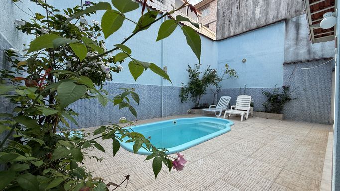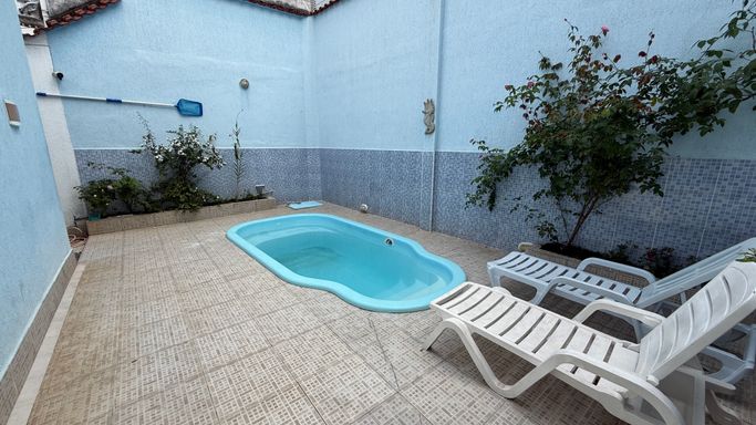 A residência conta com três dormitórios, sendo duas suítes, além de duas salas espaçosas e uma cozinha arejada, ideal para o dia a dia. Na área externa, o destaque fica por conta da piscina e da área de churrasco com churrasqueira a carvão, perfeitas para momentos de lazer e convivência. O jardim e a garagem para dois carros completam o conforto e a comodidade deste imóvel.