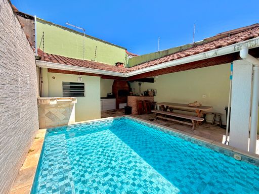 Esta casa à venda em Praia Grande no bairro Solemar oferece amplo espaço interno e excelente distribuição, ideal para quem busca conforto e praticidade em uma região tranquila e próxima à praia. Com 3 dormitórios, sendo 1 suíte, 4 vagas de garagem e 150 metros de área útil, o imóvel dispõe de sala espaçosa, cozinha ampla e quartos confortáveis, além de corredor lateral que traz maior privacidade e ventilação ao ambiente. A área gourmet integrada à piscina torna o espaço perfeito para momentos de lazer e convivência. A localização é estratégica, próxima a comércios, serviços e com fácil acesso à orla, proporcionando qualidade de vida e comodidade no dia a dia.