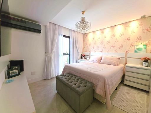 Apartamento à venda em Praia Grande no bairro Guilhermina, localizado a aproximadamente 250 metros da praia, com ampla metragem e distribuição funcional dos ambientes. O imóvel possui 163 metros de área útil, com três quartos, sendo duas suítes, além de um banheiro social e um lavabo. Conta com duas vagas de garagem livres e aceita financiamento bancário. O apartamento está totalmente mobiliado, sendo retirados apenas os itens pessoais. Dispõe de sacada gourmet com churrasqueira a carvão, sala espaçosa, cozinha planejada e quartos com móveis planejados. O imóvel foi projetado por arquiteto e possui ar condicionado em todos os ambientes, garantindo organização e aproveitamento adequado dos espaços. O empreendimento oferece portaria remota 24 horas e áreas comuns que atendem às necessidades de lazer e convivência.