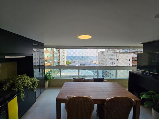 Possui sacada gourmet envidraçada com churrasqueira a carvão.