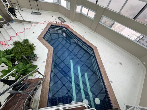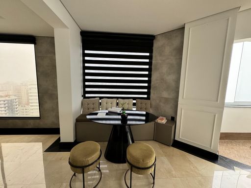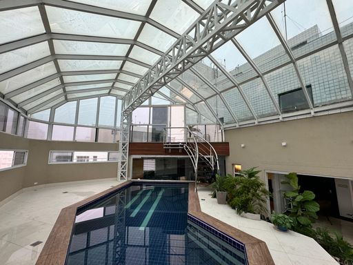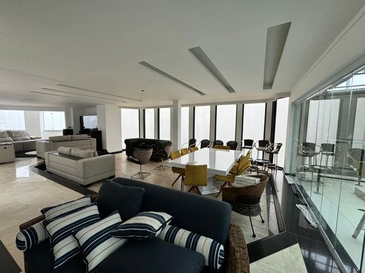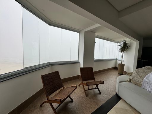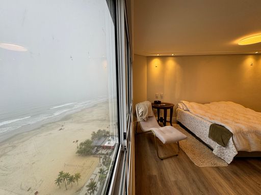 Cobertura Duplex à venda em Praia Grande na Aviação, localizado frente mar, ideal para quem busca espaço, conforto e exclusividade. O imóvel possui 580,00 m² de área privativa e 780,00 m² de área total, distribuídos em 4 dormitórios, todos suítes, ampla sala espaçosa e mobiliada, cozinha planejada, quartos com móveis planejados, além de ar-condicionado em todos os ambientes. Conta com sacada gourmet com churrasqueira a carvão, 5 vagas de garagem privativas e aceita financiamento bancário. A mobília planejada está inclusa, sendo retirados apenas os itens pessoais. O imóvel aceita permuta, incluindo imóvel e carro. O empreendimento oferece portaria, piscina, salão de festas, salão de jogos, sauna dentro da cobertura, academia e solarium, proporcionando lazer e comodidade em um só lugar.