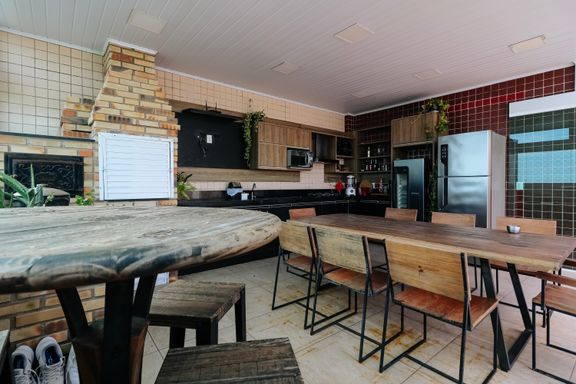 Salão de festas com churrasqueira a carvão
